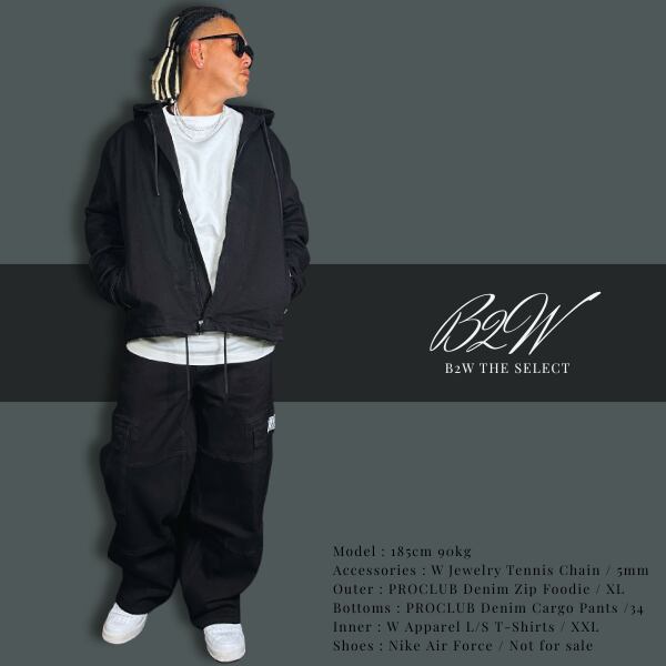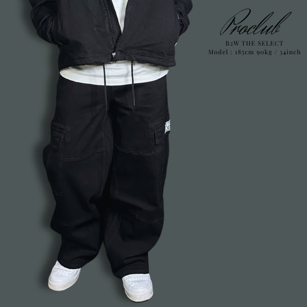PRO CLUB 「Denim Cargo Pants Baggy Black」