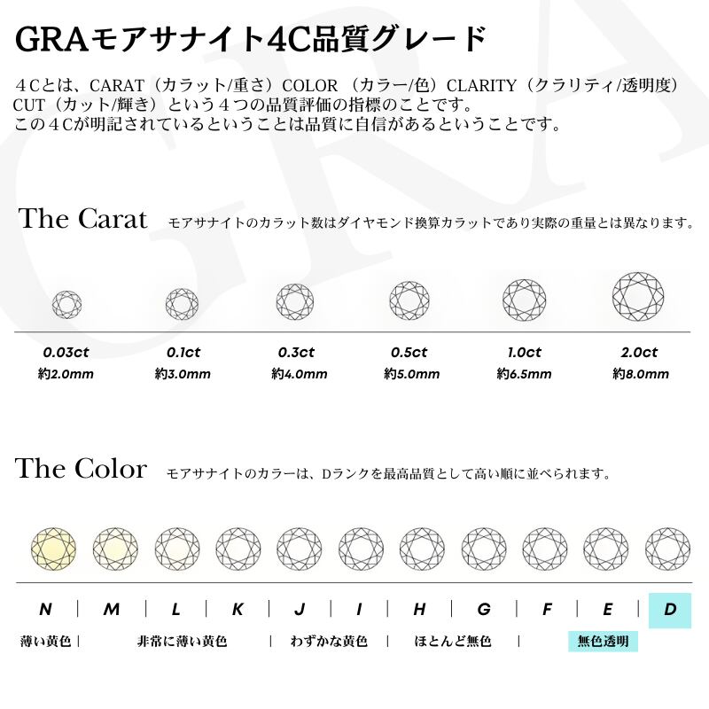 ※本商品に付属するGRA証明書はモアサナイトのサイズ・カラット(ダイヤモンド換算)・カラー・クラリティなど基本的な仕様を記載した参考資料です。