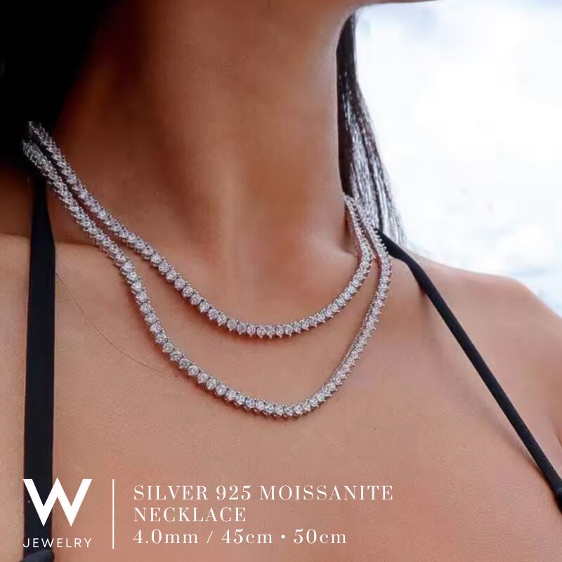 W Jewelry Moissanite "Tennis Chain Necklace" Silver 4mm