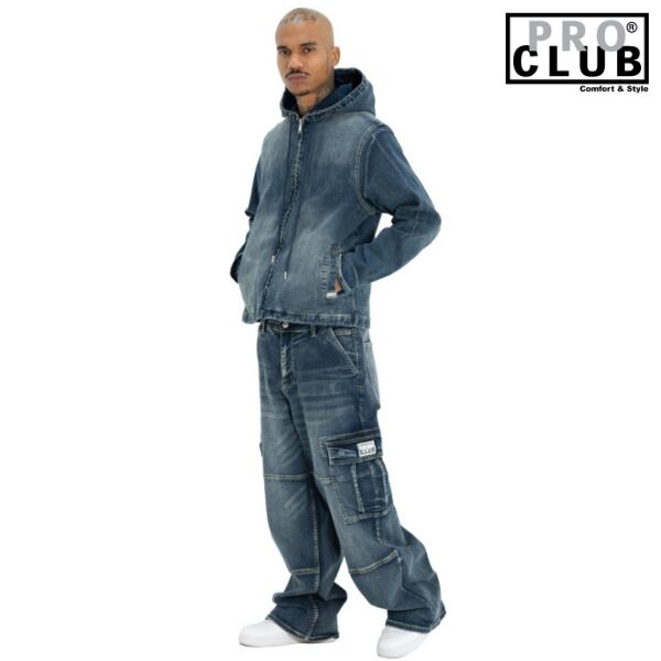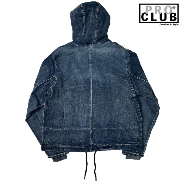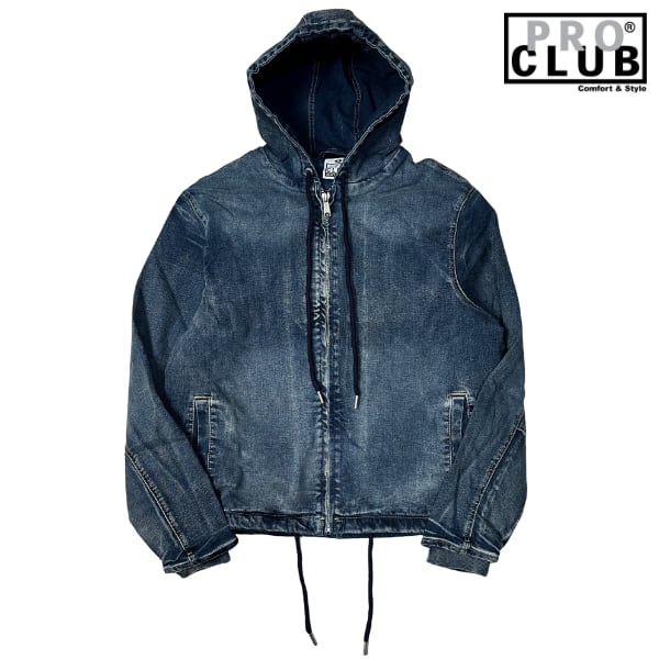 人気急上昇中のプロクラブからジップアップジャケットの入荷です。 ジップパーカースタイルで、ヘビーウェイトで硬さもありストレッチの利いた生地で動きやすく、袖のリブが風を入れず温かく裏地にもデニムを使っておりシンプルなつくりだがディテールにも凝ったジャケットです。サイズ感は大きめで、ルーズに着用するとストリート感あるスタイルとなり、ジャストで着用しても大人っぽい雰囲気が醸し出されます。仕事着としてもタフに使えます。ラッパーのeydenがPVで着用しており人気なPROCLUB。おすすめです!