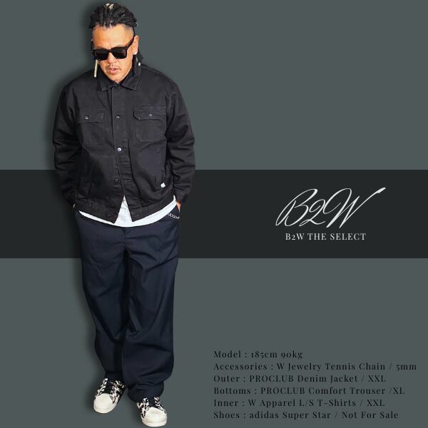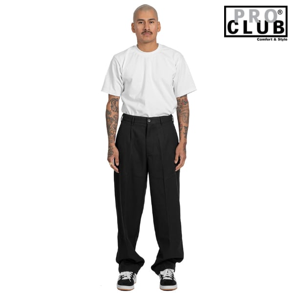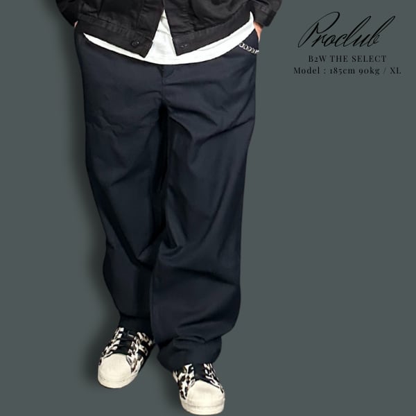 フロントにワシットのプリーツがついており、シルエットも上品でフロントポケット、バックにウェルトポケット、クラシックな快適さとスタイルを実現するバギーレッグフィット。ドレスシューズとの組み合わせに最適で、最高の快適さとスタイルを実現。もちろんスニーカーでも右バックポケットの上にPROCLUBウーブンラベルがついていてシンプルながら履き心地も抜群でキレイ目なストリートスタイルにおすすめです。ラッパーのeydenがPVで着用しており人気なPROCLUB。おすすめです!