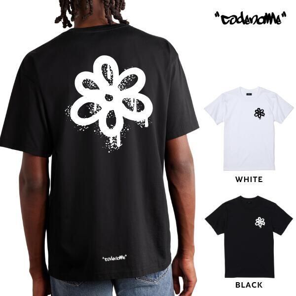 CODENAMEのスプレーで書いたフラワーをプリントしたTシャツ。モノトーンでシンプルでストリートアート感のある大人っぽいデザインの1着。どんなスタイルにも合わせやすいデザインです。